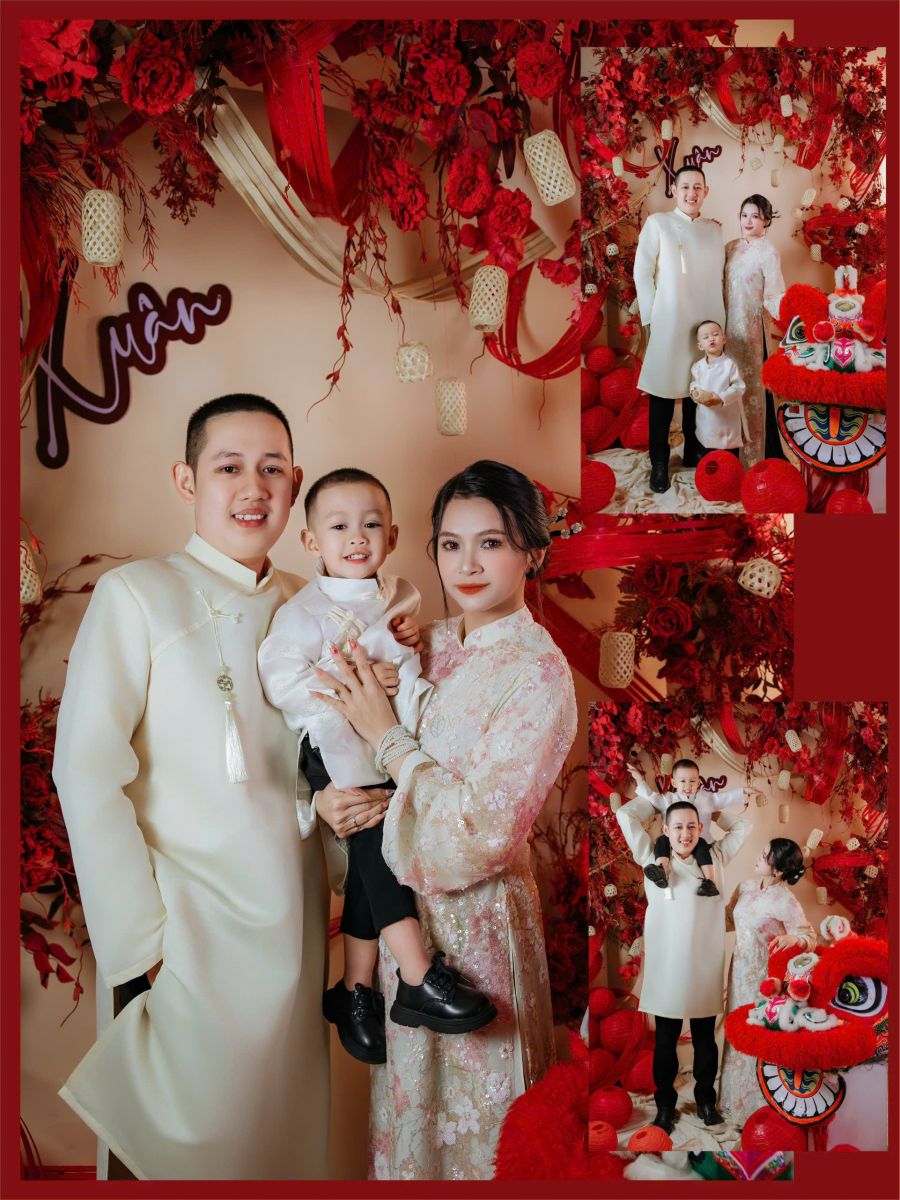 Trang phục đồng điệu, tạo dáng tự nhiên, tập trung vào sự gắn kết của cặp đôi. Concept vừa có không khí Tết, vừa giữ nét tinh tế, nhẹ nhàng.